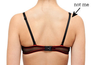Once you round up the mammaries in your over the shoulder boulder holder, go one step further and tighten up the straps. They’re adjustable for a reason. Nips should not be pointing to the ground. Hoist those puppies back up to home base. Let your headlights lead the way in front of you. Your back will thank you. And so will I.